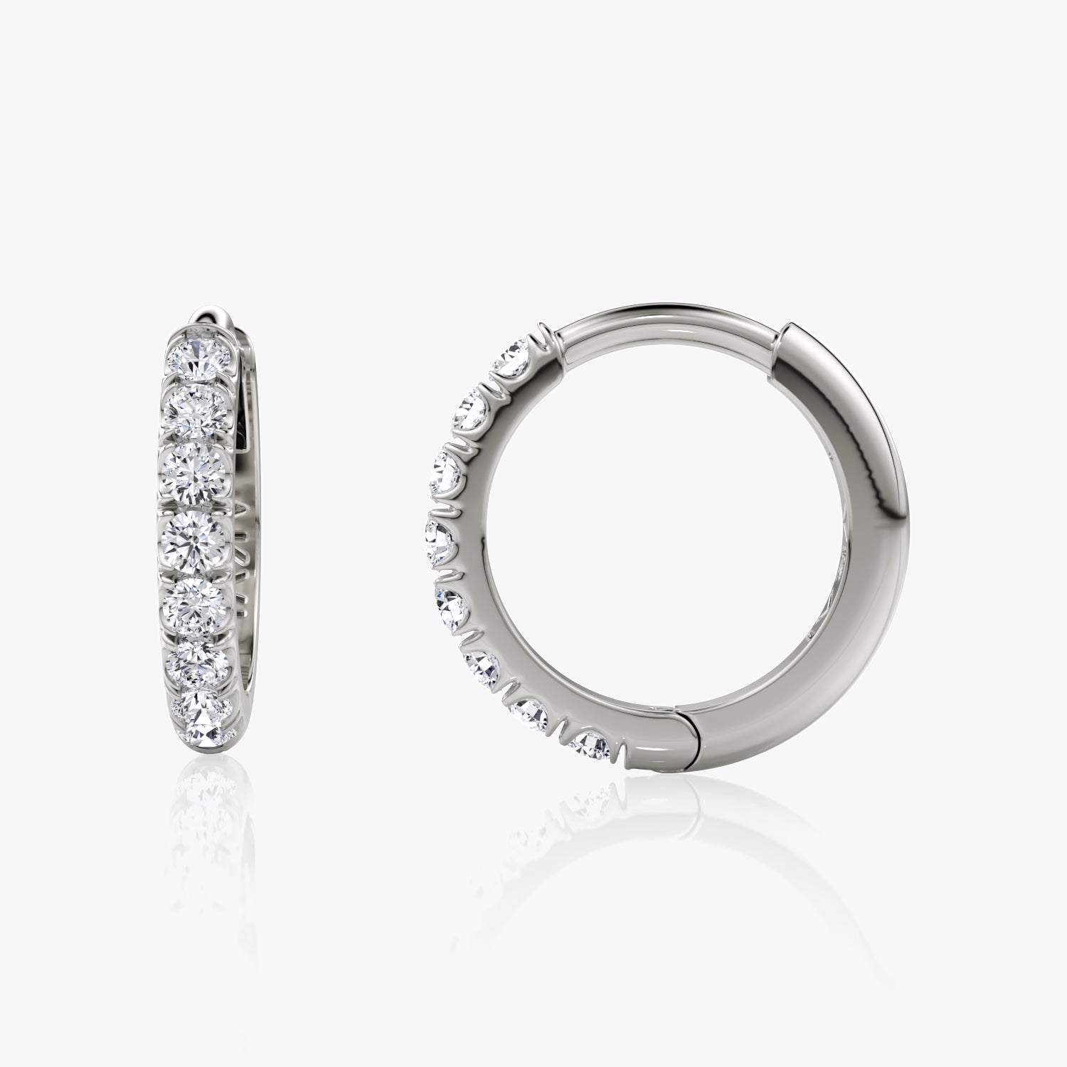 Effortlessly elegant staples updated for your every look. Solid gold or sterling silver hoops shine even brighter with an array of pavé VRAI created diamonds that catch the light with every step you take. The large hoops are perfect for solo wear or first piercings. Petite and medium sizes are true to their original huggie design and sit close to the lobe, making them perfect for stacking and second piercings.